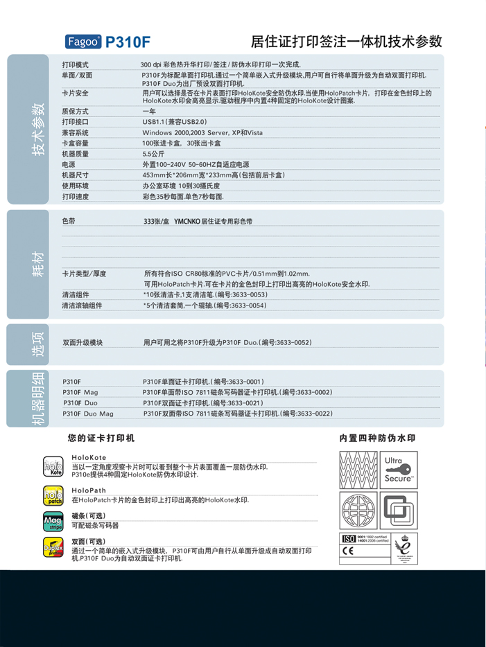 全格彩色色带 YMCKO | FA300 | 300 | Fagoo P310E |