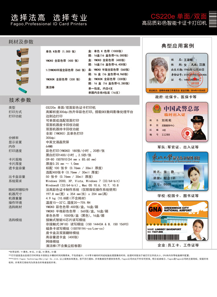 法高彩色证卡制作系统V5.0是一款功能强大,操作简单的全中文(英文可选)操作界面的专业级证卡制作系统。该系统是由法高公司自主研发,基于Microsoft Visual C++ 6.0开发,采用所见即所得的可视化操作技术,可运行于Windows XP/2000/2003/20082012/Win7/Win8操作系统平台。