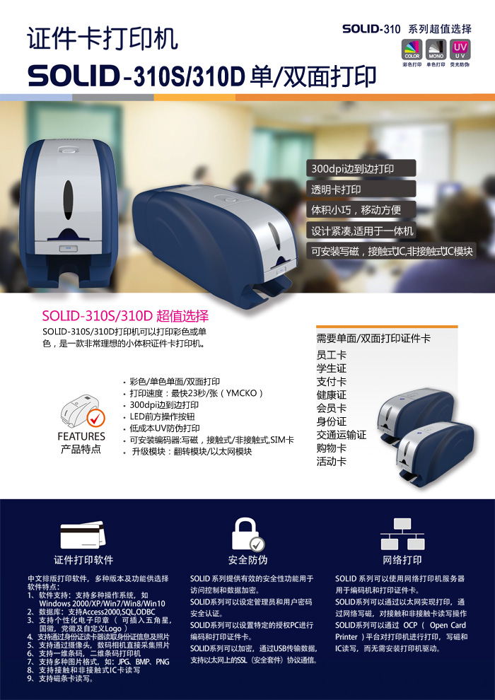用户只需要简单培训,即可使用本系统完成个性化卡片设计及制作,该系统广泛应用于政府、军队、企业银行、学校、医院、大型会议和赛事等各行各业证件制作。