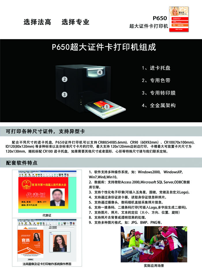 用户只需要简单培训,即可使用本系统完成个性化卡片设计及制作,该系统广泛应用于政府、军队、企业银行、学校、医院、大型会议和赛事等各行各业证件制作。