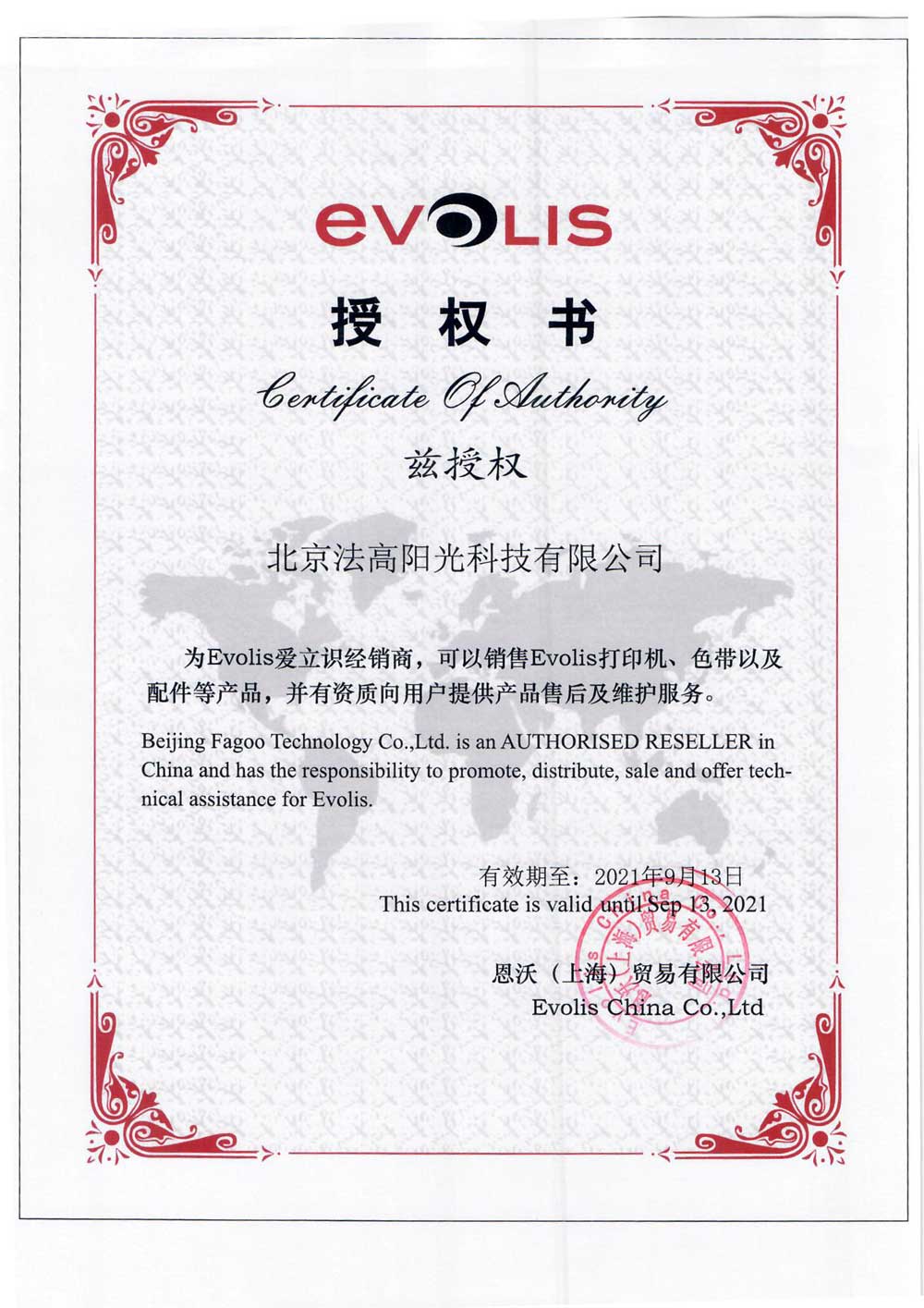 Evolis 2020法高授权