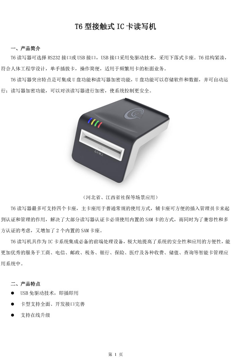 德卡T6接触式读卡器