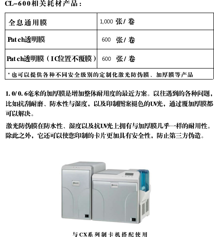 与CX系列打印机配套使用